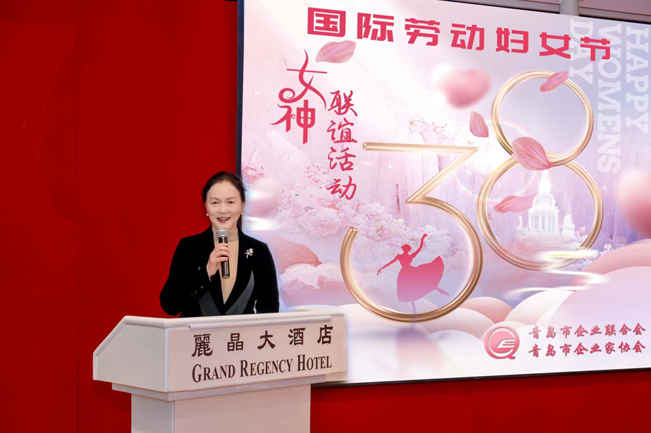 青島皇家美孚食品有限公司總經理姜耀東為女企業(yè)家們送上節(jié)日祝福。